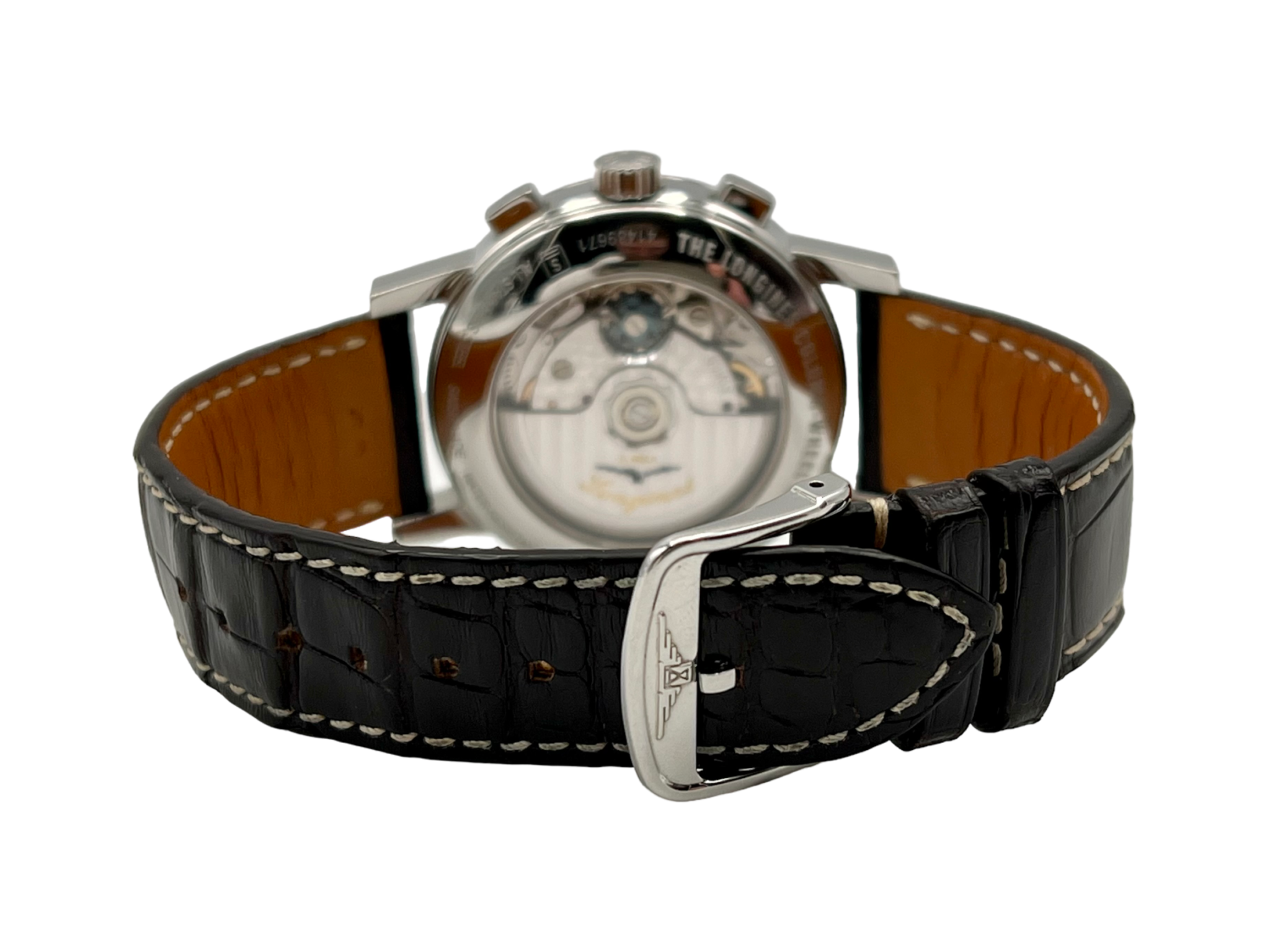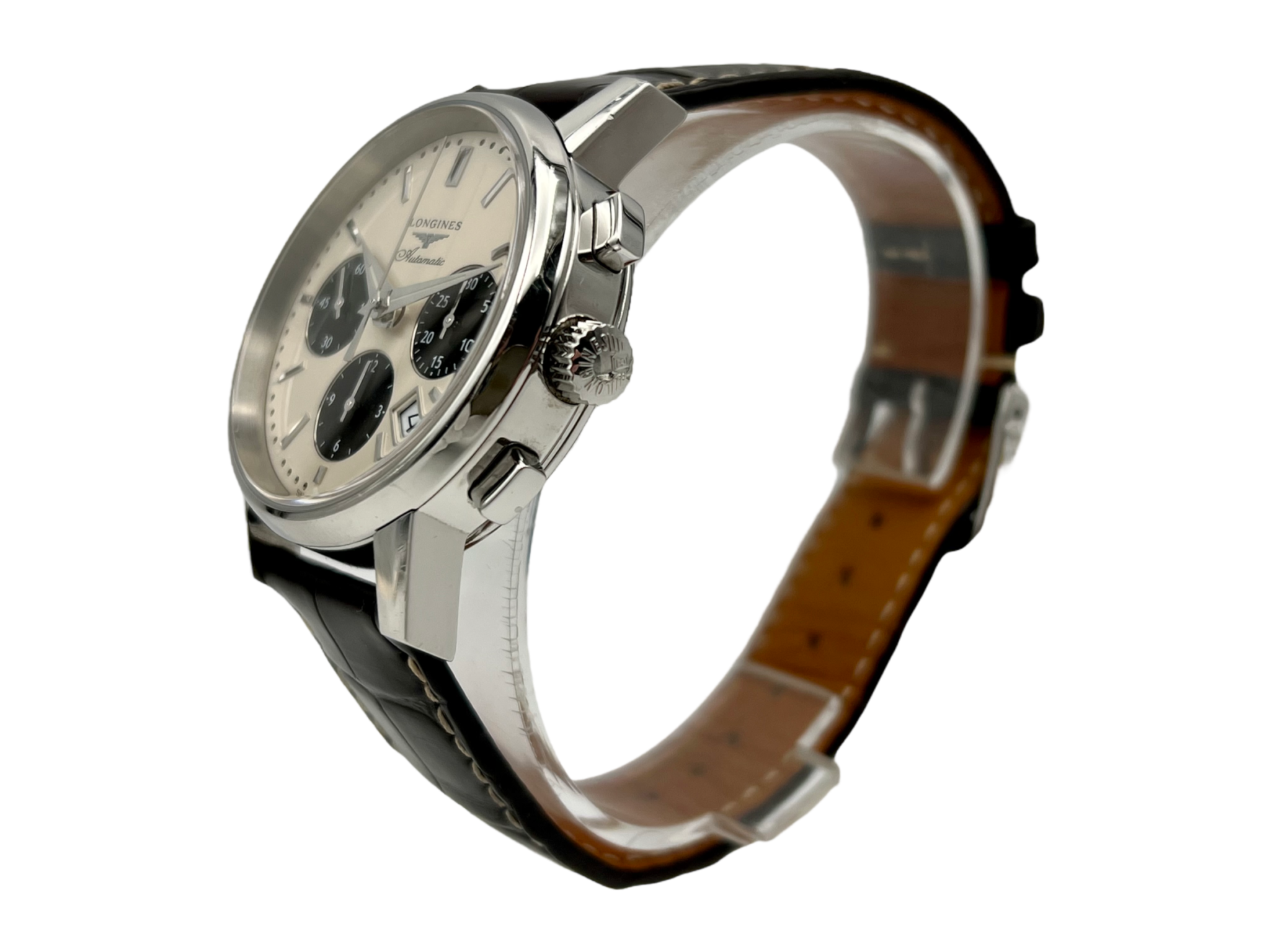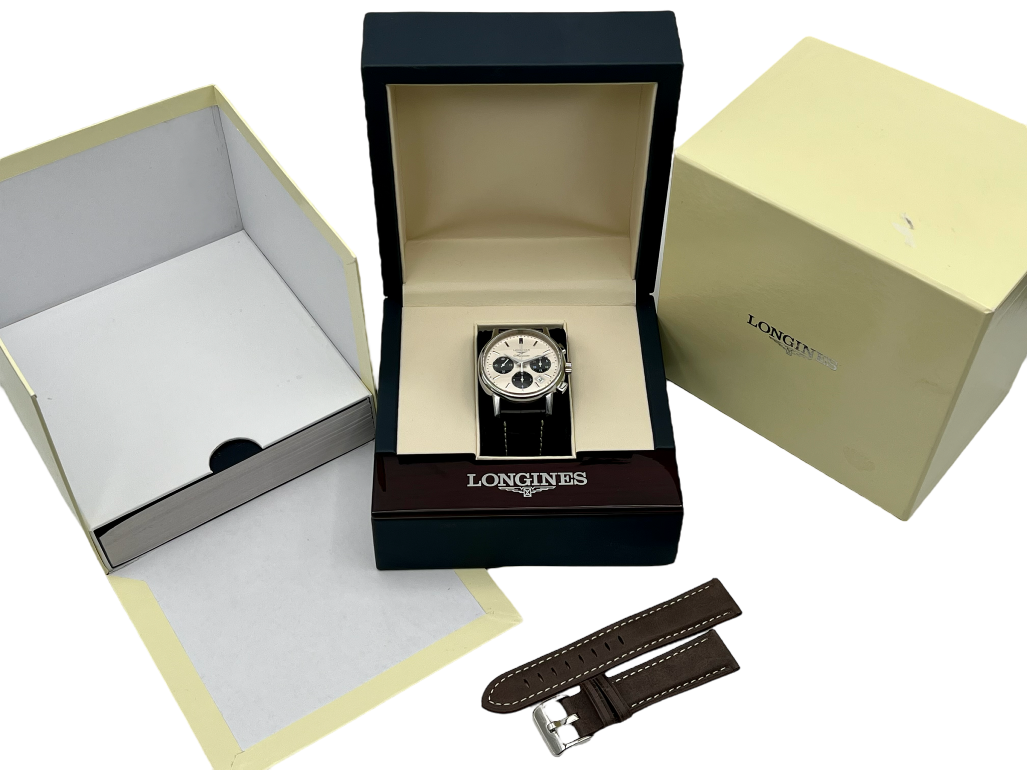 Zusätzlich wird ein neues, passendes Echtlederarmband (nicht von Longines) dazugeliefert
